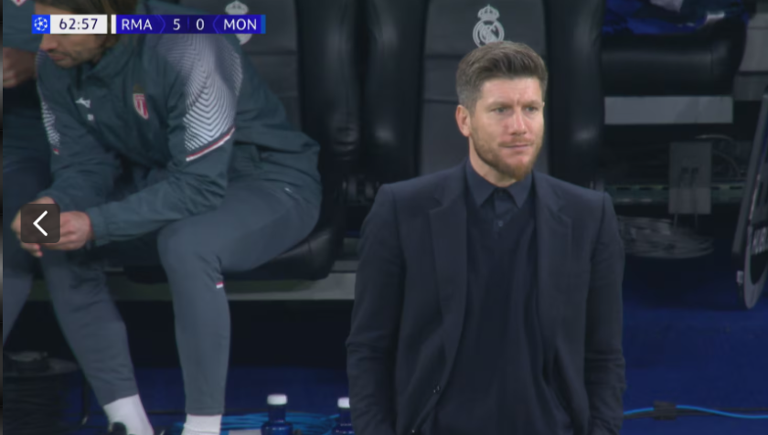 Няколко секунди по-късно Белингам отново бе изведен на отлична позиция в наказателното поле на Монако, но този път стреля в аут.