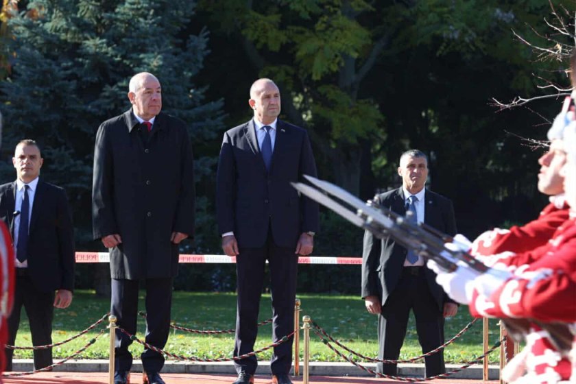 Държавният глава пристигна за срещата с унгарския президент пред Паметника на Незнайния воин