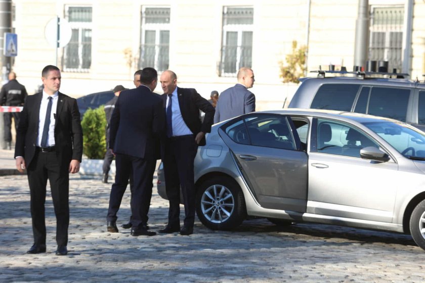 Президентът Румен Радев пристига с личния си автомобил за церемонията по посрещане на унгарския президент пред Паметника на Незнайния воин.