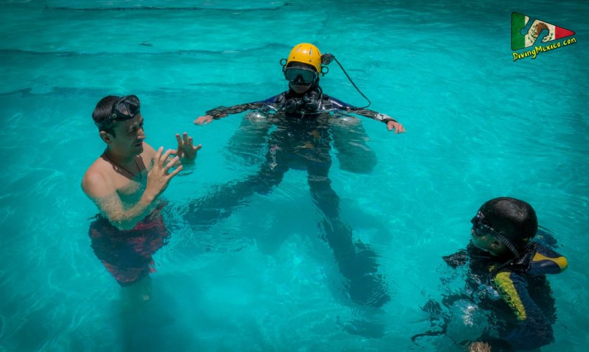 Ивайло Калушев преподава уроци на невръстни водолази в басейн в Мексико. Снимката е от 2016 г.