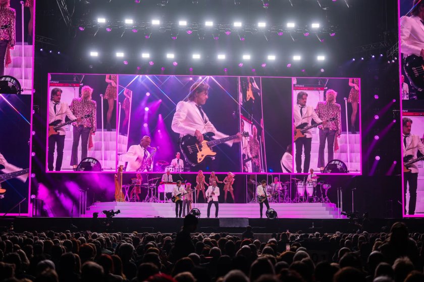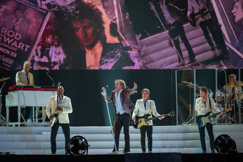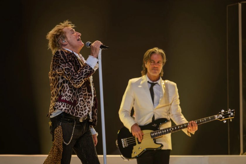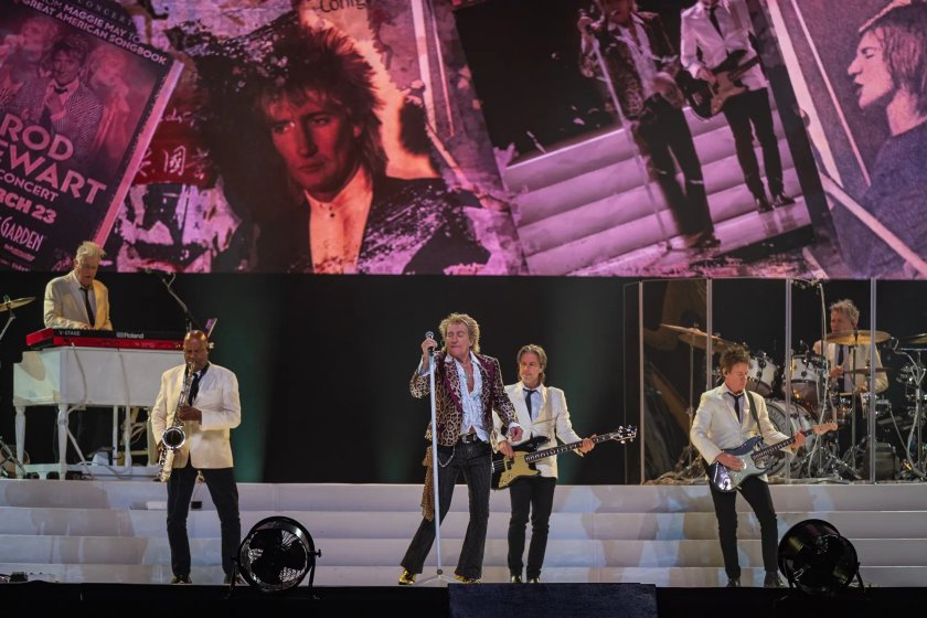 Цветен и верен на стила си, Род Стюарт бе в компанията на 13 фантастични музиканти. Шест от тях бяха дами в секси тоалети, които освен че са беквокалистки, свириха и на различни инструменти като цигулка, арфа, ксилофон.
