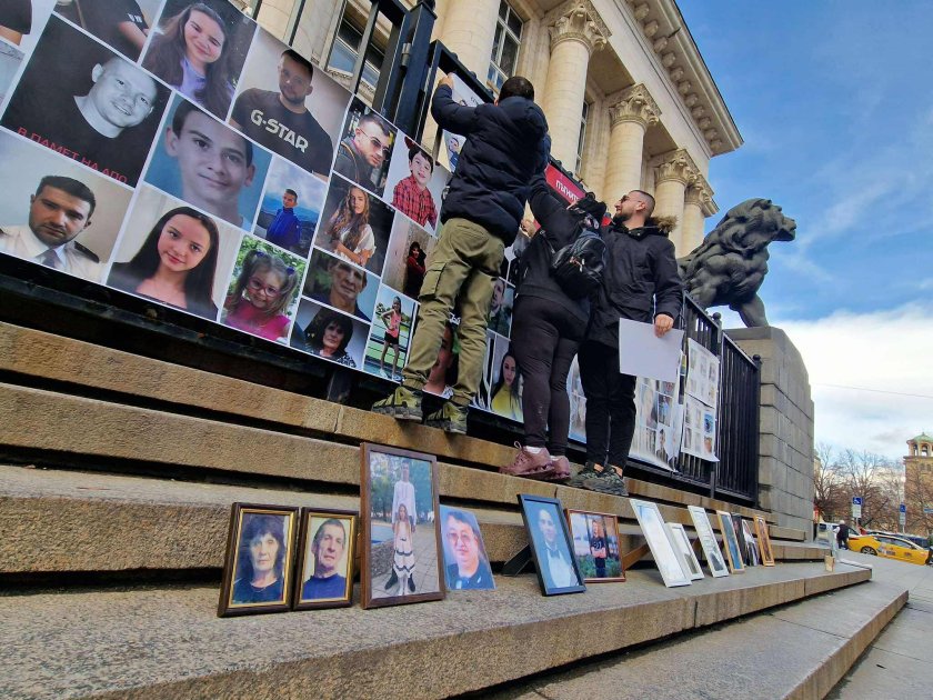Протестиращите залепиха плакати на оградата на Съдебната палата с надписи „Скоростта убива“, „Справедливост за децата ни“ и „Пътните убийци убиват децата на България, държавата убива семействата им“.