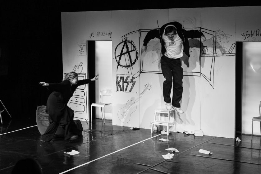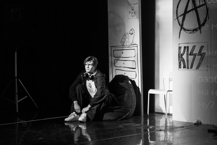 - За мен това е също голям експеримент, защото не разполагам с пари за тези неща и аз всичко правя сам. Бих искал да кажа, че спектакълът го направихме с международен екип. Имаме човек от Финландия – Теодор, който е оператор и който направи снимките. След това той ми ги прати и аз ги обработих през различни програми и всичко се получи много добре. Мой приятел руснак, който живее пък в Сърбия, ми помогна за анимацията и за движението на буквите по стената. Аз самият изучих програмата за стриймване на мултимедия. Но всичко измислихме сами. Направих сам декора като дърводелец. Когато реших, че искаме да рисуваме на стената и да го трием, беше сложно да намерим този материал – да държиш маркери и да триеш. Актьорите се притесняват да рисуват, но се надявам, че малко по малко нещата се получават.