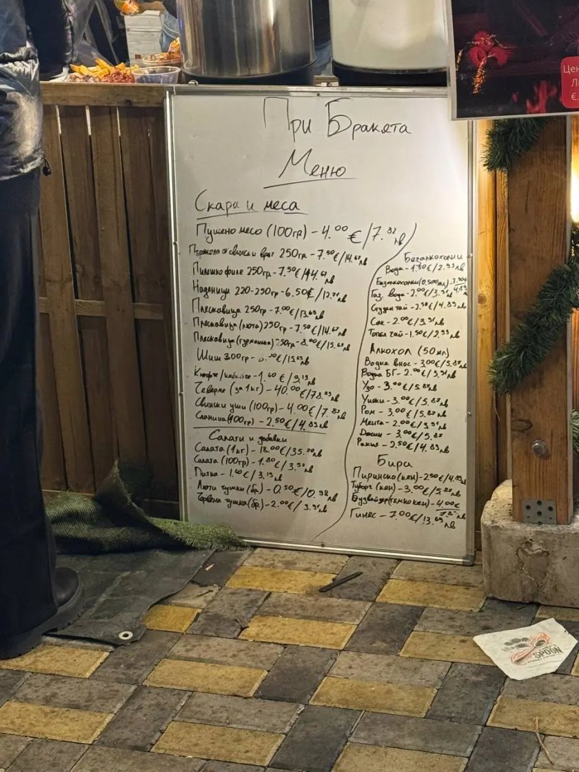„Шест кюфтета, три наденици, три малки наденички, щипка кисело зеле щипка, щипка царска туршия“ – 60 евро, сигнализира друг гост на фестивала.