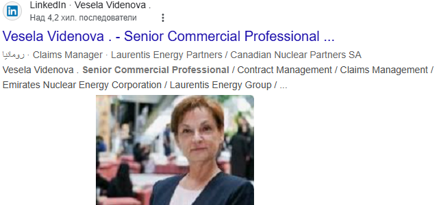 Самият Богдан Димитров не е лишен от конфликт на интереси по линия пък на своята бивша благоверна. Става въпрос за дама на име Весела Виденова, която иначе е сочена за отличен експерт-консултант по енергийните въпроси. Интересно обаче - тя също, макар бивша съпруга на заместника на Петьо Иванов, продължава да е орбитата му - чрез избрания консорциум за инженерговия консултат за бъдещите блокове начело с канадската "Laurentis Energy Partners". Там Виденова, бивша Димитрова, изпълнява функцията "ръководител на звеното по комуникации, реклама и... неустойки".