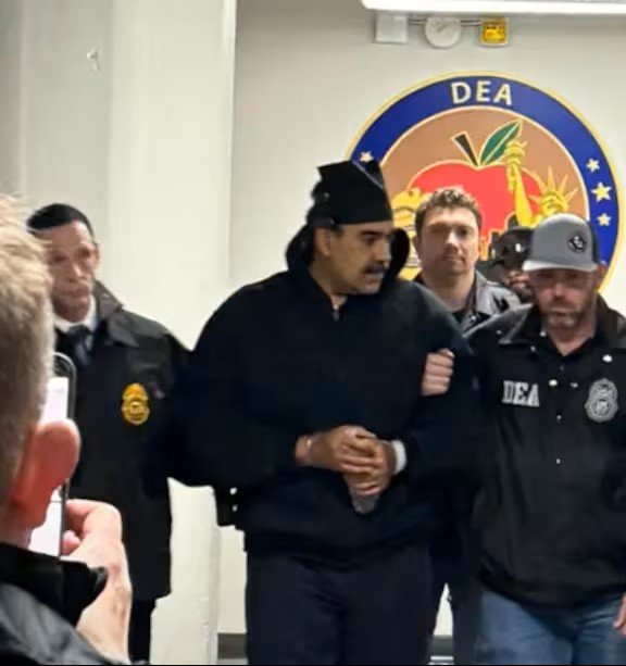 Белият дом разпространи видеозапис в социалната мрежа „Екс“ (X), на който се вижда как Мадуро, окован с белезници и ескортиран от служители на Агенцията за борба с наркотиците (Drug Enforcement Administration – DEA), преминава по коридор в сграда на федералните власти. В официалния акаунт Rapid Response на Белия дом кадрите бяха придружени от коментара „Perp walked“ – израз, използван в САЩ за публично извеждане на заподозрян след арест.