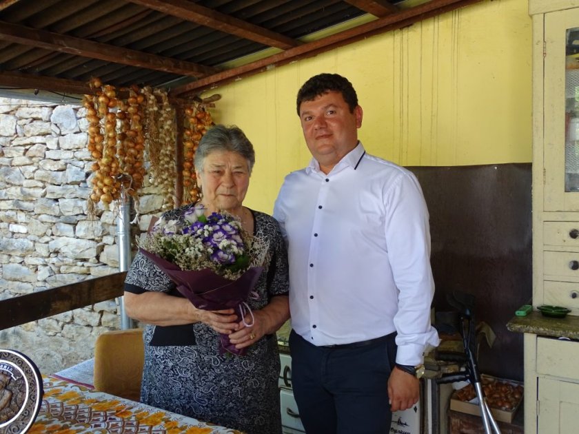 Кина Гърбова с кмета на Сухиндол Пламен Чернев, който миналата година я поздрави лично за 80-ия й юбилей