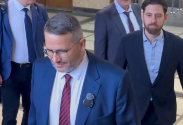 Служебният министър Иван Христанов, следван по петите от верния му приятел Ангел Мавровски