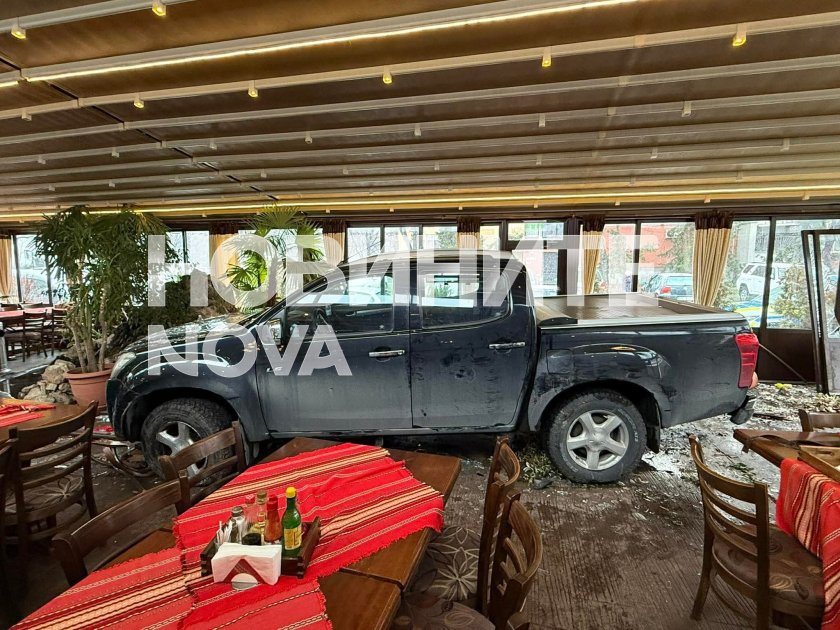 От newspoint.bg допълват, че става въпрос за заведението „При Румен“. Кадрите от инцидента показват, че автомобилът е съборил и част от масите на заведението.