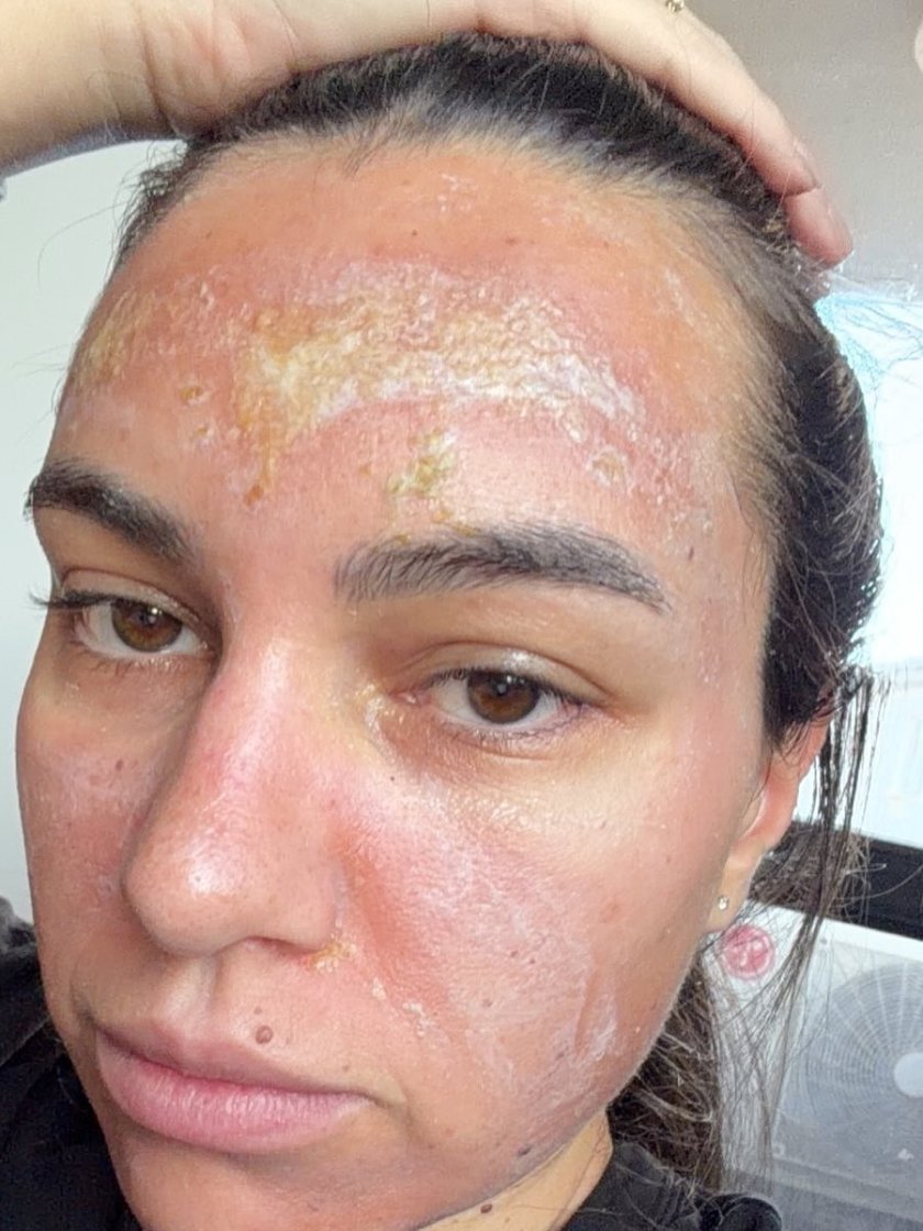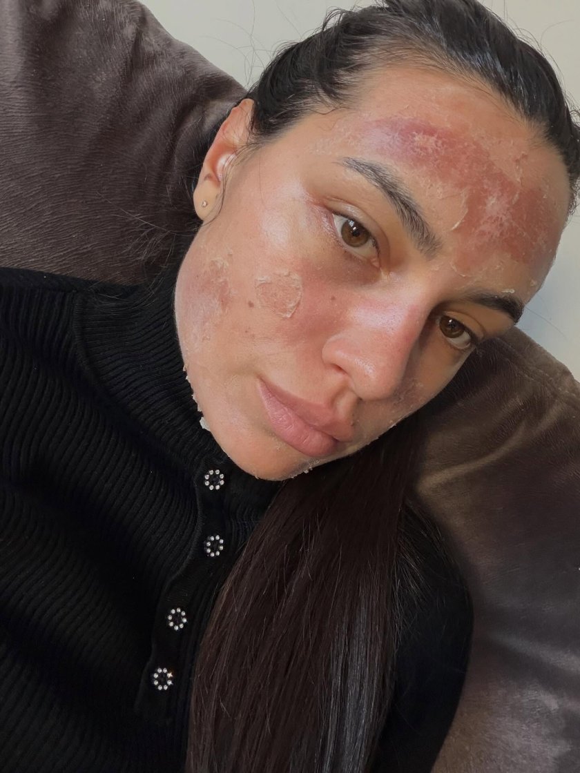Младата жена реши да направи обществено достояние своя челен сблъсък с опасностите, които крият разкрасителните процедури. Дори невинни такива, пробутани като "билков пилинг"
