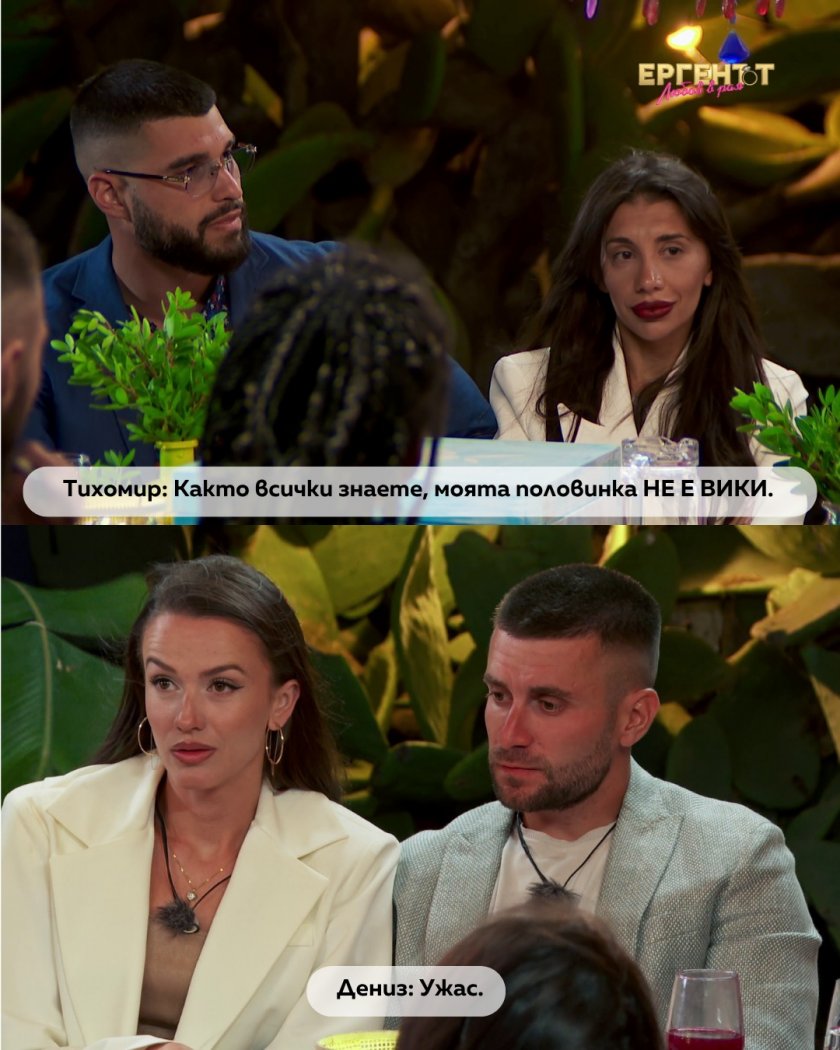 Напрежението между двойките и бившите партньори достигна своята кулминация, а някои отношения изглежда приключиха завинаги. Най-неочакваният разрив се случи между Тихомир и Виктория, а причината за драмата се оказа... една луканка. След като Тихомир предпочете да не сподели деликатеса с Виктория, тя явно е почувствала, че това е по-голям знак от обикновен спор за храна. Ситуацията ескалира, когато Тихомир заяви пред всички гости на банкета, че Виктория със сигурност не е неговата половинка. Думите му бяха изречени с категоричност, но изглежда, че самата Виктория все още не е готова да приеме края на връзката им.