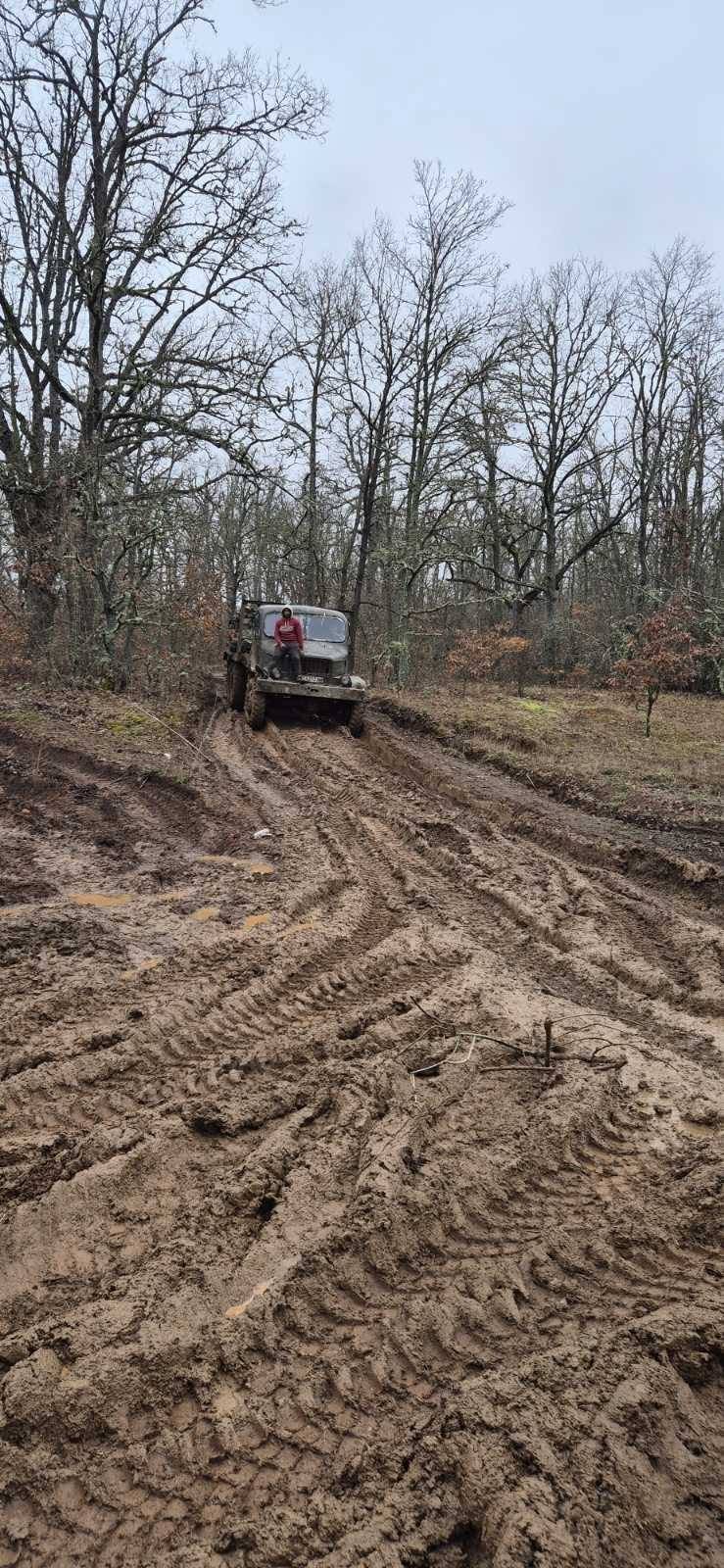 Настилката е напълно компрометирана от тежките машини. При валежи трасето се превръща в трудно проходимо.