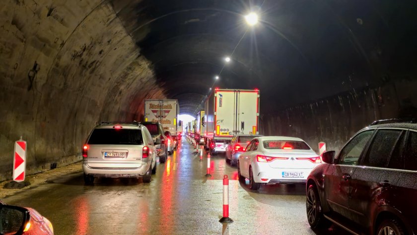 Поредна дупка на "Хемус" направи тапа на магистралата и вбеси шофьорите. Това се случва на 36ти километър посока София. Lupa.bg видя, че задръстването се точи и в тунела.