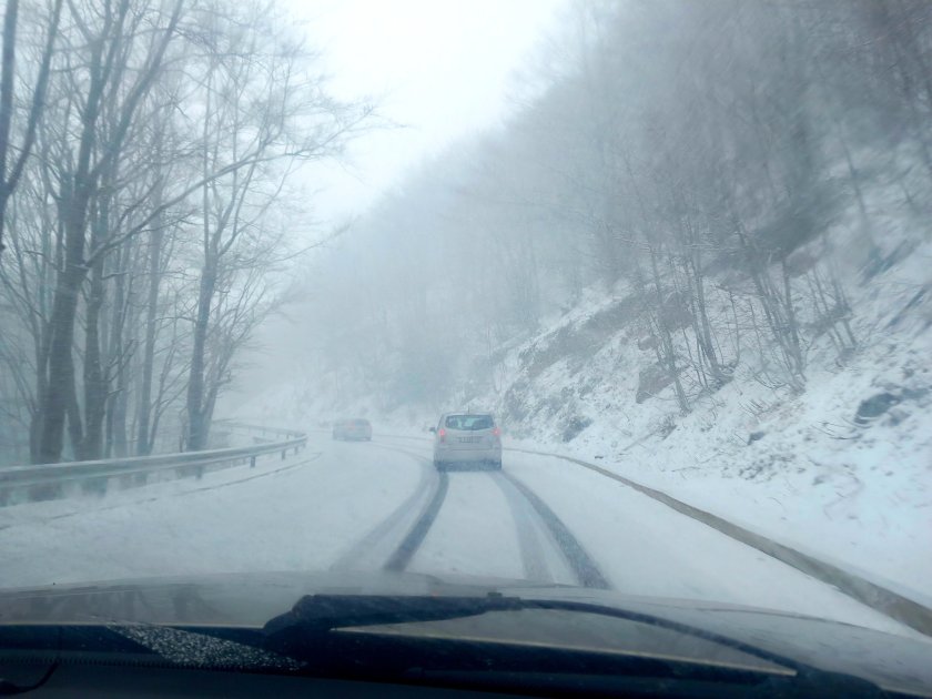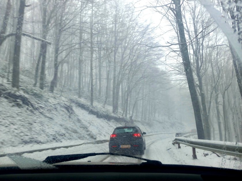 Движението през старопланинския проход не е спряно, но се осъществява при зимни условия, като водачите трябва да са със зимни гуми.