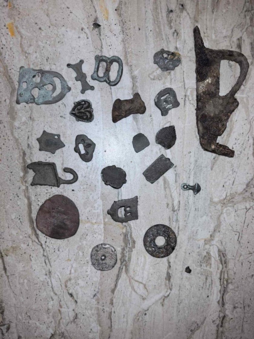 При претърсване в дома на мъжа са иззети 18 монети различни по вид и размер, като най-малката била 1 см, а най-голямата - 3,5 см, две метални кръгли шайби с дупка по средата, два метални накита, метално украшение, наподобяващо листо, метално копче, с кукичка за захващане от едната страна с изобразена корона, 14 метални предмети, представляващи накити и части от накити с различна форма и големина и дуги.