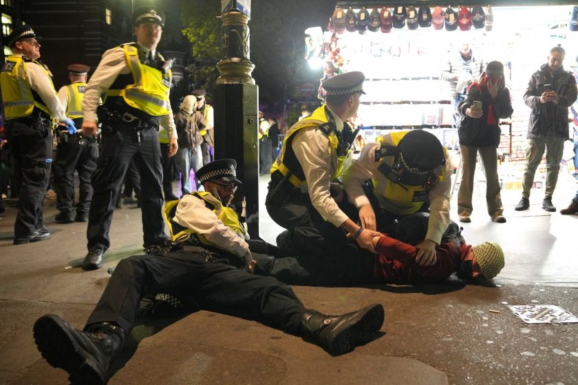 По-голямата част от арестите са били извършени на площад "Трафалгар", където протестиращите са държали плакати в подкрепа на "Действие за Палестина".
