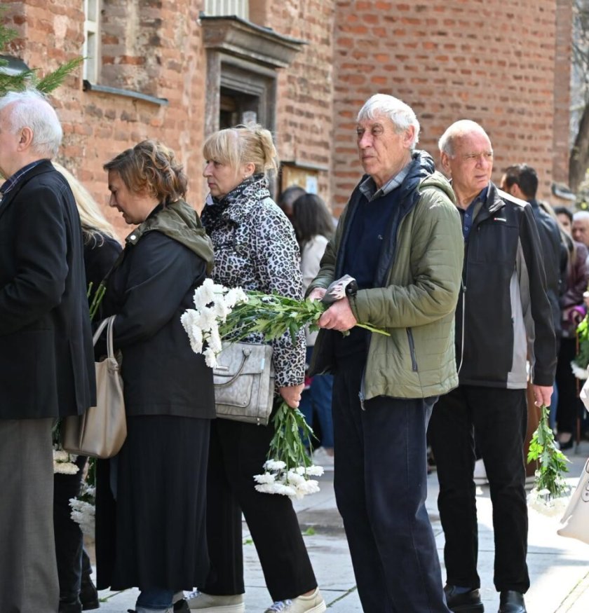 В църквата "Света София" се събраха стотици приятели, почитатели и колеги за поклонението пред композитора Кирил Икономов, който почина на 16 април по-малко от месец преди да навърши 72 години.