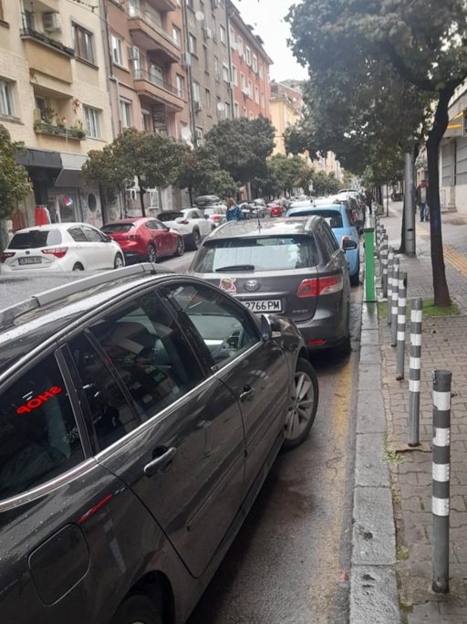 Според правилата, автомобилите може да спират само от едната страна на улицата, където се води "синя зона", но въпреки това редовно се паркира в гъсти редици и от двете, възмущават се пешеходците.