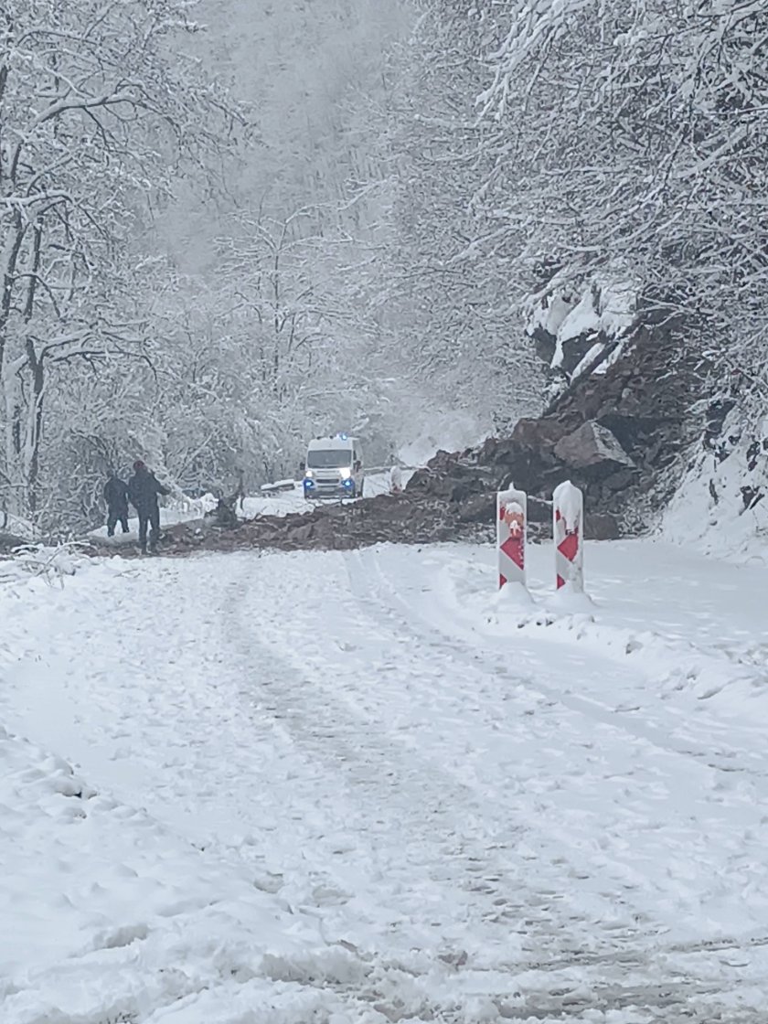 Свлечена земна маса блокира пътя към Пасарел (СНИМКИ)