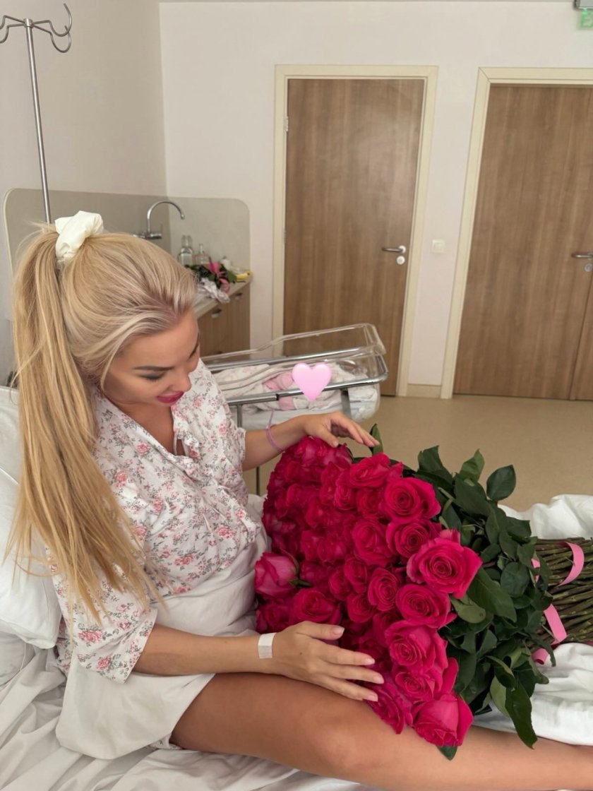 Залпът от снимки завърши с червените рози, с които Ивайло Батинков е напълнил стаята на жена си в клиниката и на самата нея – може да е родила, но е порядъчно гримирана и оправена за фотосесиите.