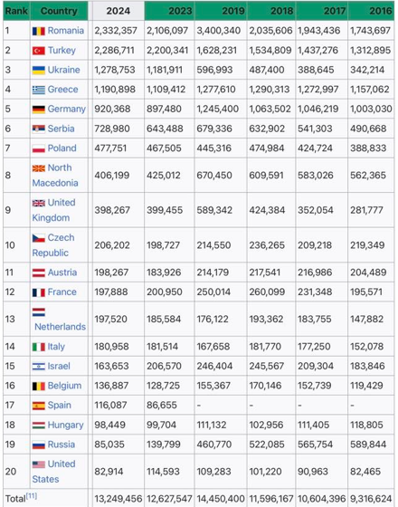 Предварителните данни от 2025-а, които все още не са окончателни, показват подобни резултати както през 2024 г.