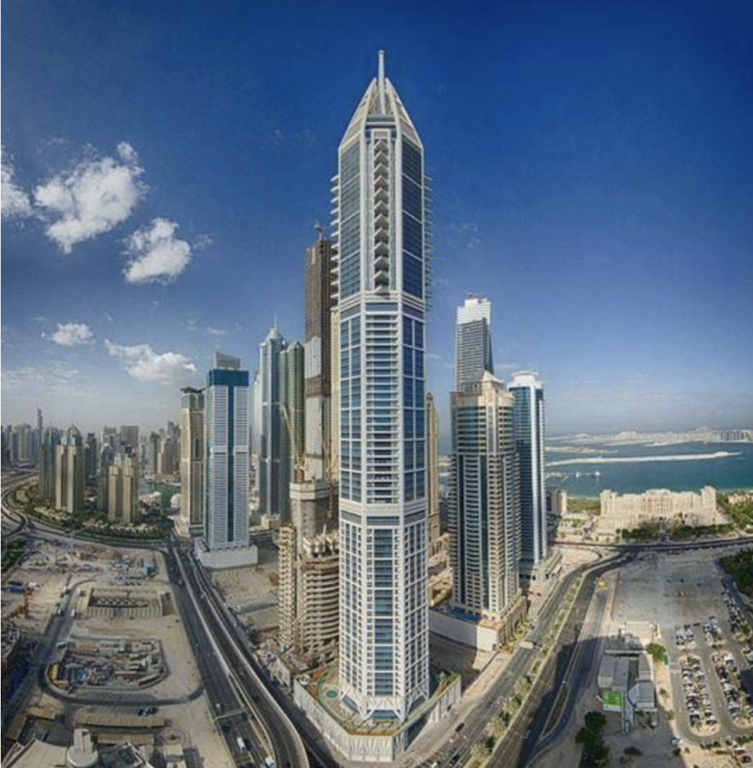 Смята се, че кулата е 23 Marina Tower, една от най-високите жилищни сгради в света. Дубайската медийна служба съобщи, че „отломки“ от „успешно прихващане“ са ударили фасадата на кулата.