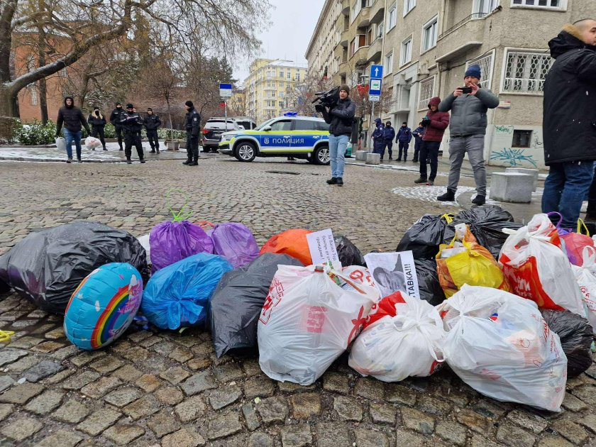 В знак на протест: Граждани изсипаха чували с боклук пред Столична община (СНИМКИ)