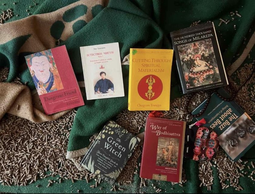 "Снимките и ритуалните предмети, които виждаме – тханки, статуетки, молитвени колела, броеници и олтар – принадлежат към тибетския будизъм, основно към школата Нингма, най-старата школа в Тибет, тясно свързана с учението Дзогчен и с древната традиция Бон с които аз съм запозната лично и съм посещавала в Тибет! Това са практики, основани на ненасилие, дисциплина и състрадание. Те нямат нищо общо с култ към личността, власт или манипулация.
