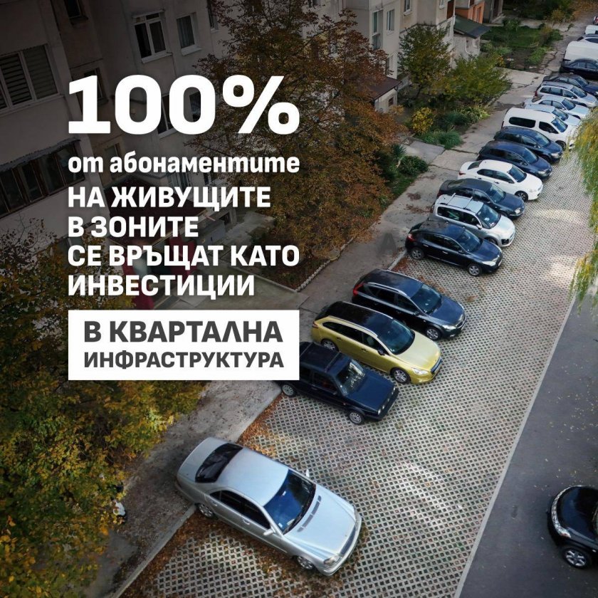 От догодина 100% от средствата от абонаментите на живущите в зоните ще се връщат в града. С тях ще финансираме реални подобрения около домовете на хората: улици, тротоари, осветление, паркинги, премахване на кални точки. Все неща, за които досега парите не стигаха.