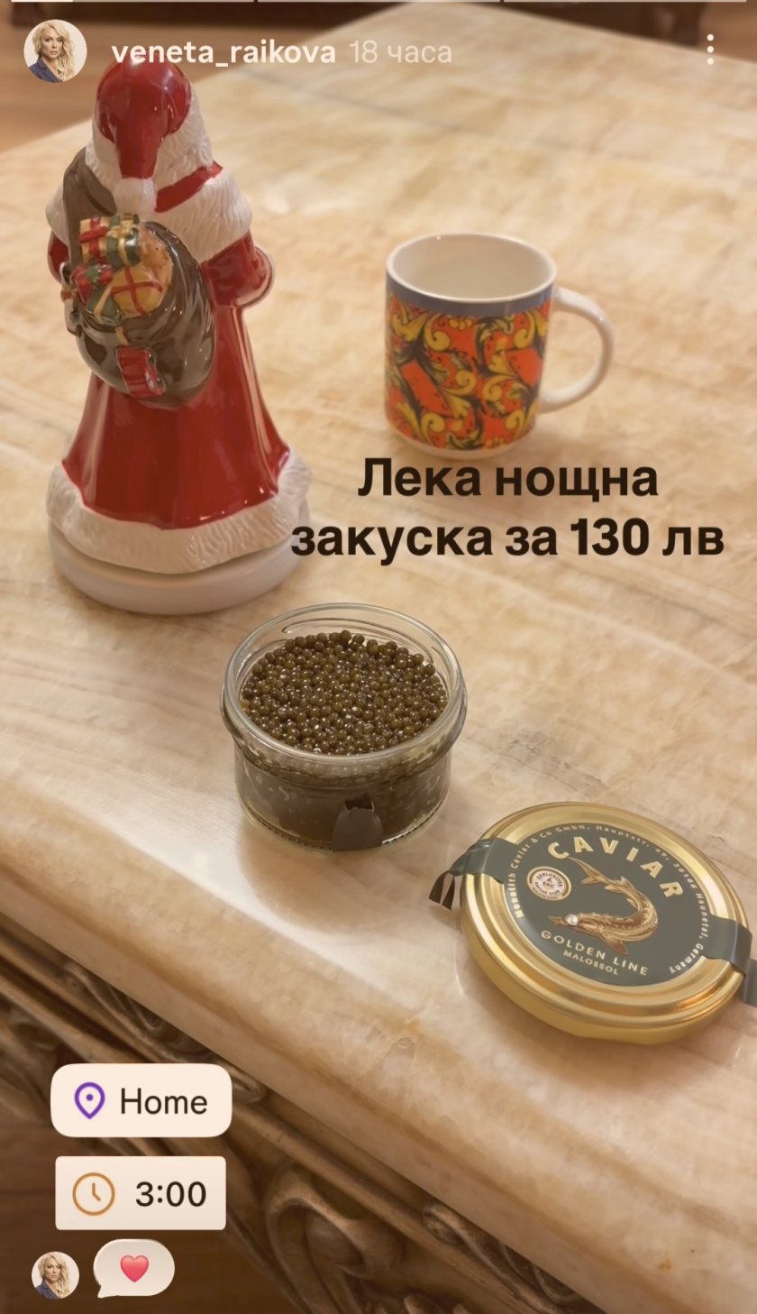 Венета Райкова похапва хайвер за 130 лева