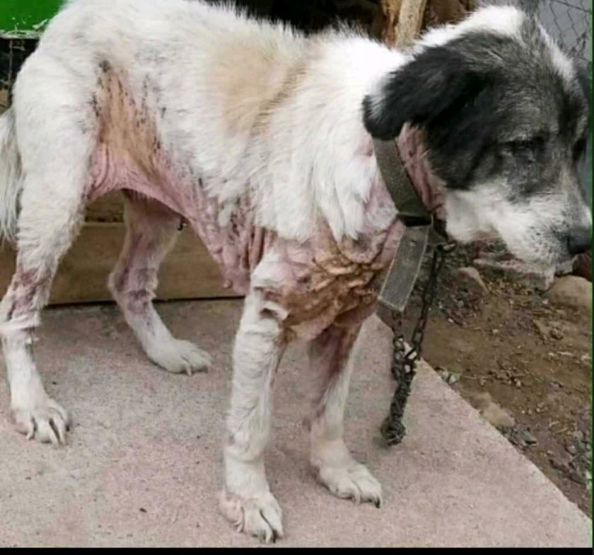 "Ада е на земята. Злото има лице - човешко. На първата снимка е Мия( общински приют)в състоянието в което, нейния "собственик" я оставя в Приюта. Собственикът - Петър Стоянов, бивш служител в структурата на МВР като пожарникар. Последните две са отпреди дни. Състоянието й се подобрява, но ще изминат вероятно шест месеца до възстановяване изцяло на козината. Вижте очите й - този поглед няма как да не развълнува дори каменно сърце. Мия е с кожен проблем от август. Оставена без лечение, много често без храна и вода. В крайна сметка "собственика" е склонил като, не желае да се грижи за нея, поне да я остави в приют. Преди време Мия е била красиво, здраво и щастливо момиче. За съжаление първият собственик е починал, а тя "върви" с имота му. Не знаем как новия притежател на имота полага грижи за него....но видяхме резултата от грижите му за кучето. Задаваме въпрос - колко трябва да си безчувствен, за да доведеш до такова състояние едно живо същество?!