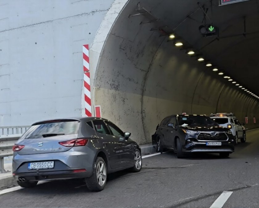 Катастрофа затруднява движението по АМ "Струма". Инцидентът е станал на малкия тунел. Снимки от очевидец бяха публикувани в групата "Катастрофи в София" във Фейсбук.