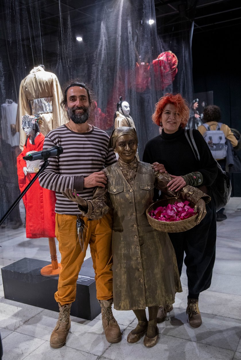 Наградените Юлиян Табаков, Ащон Ка и Мариета Голомехова, която получи една от най-големите награди на СБХ за костюмите си от спектаклите "Дон Кихот" и "Невидимо дете". Фотограф: Виолета Апостолова-Лети