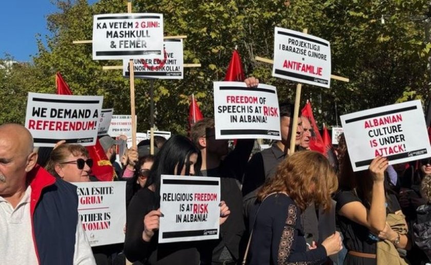 Пред сградата на албанския парламент в Тирана се проведе протест на граждани и представители на гражданското общество срещу определени разпоредби в проектозакона „За равенството между половете“, който днес е в парламентарна дискусия, съобщава Албанското радио и телевизия, предава БТА.