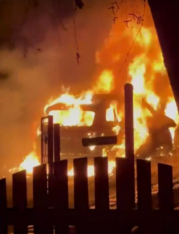 Малко по-късно дим започнал да влиза и в къщата. Впоследствие той установил, че е била подпалена и входната врата.