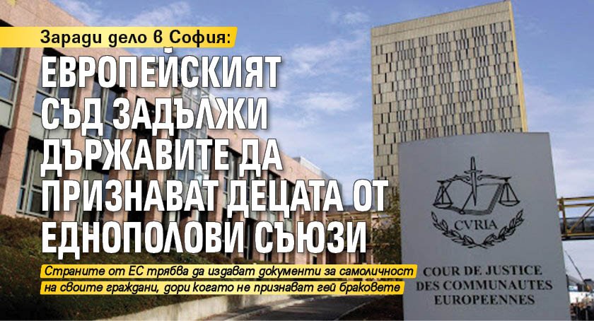 Европейският съд постанови днес решение по дело, заведено заради отказ на район Панчарево на Столичната община да издаде акт за раждане на дете от родители в еднополов брак.