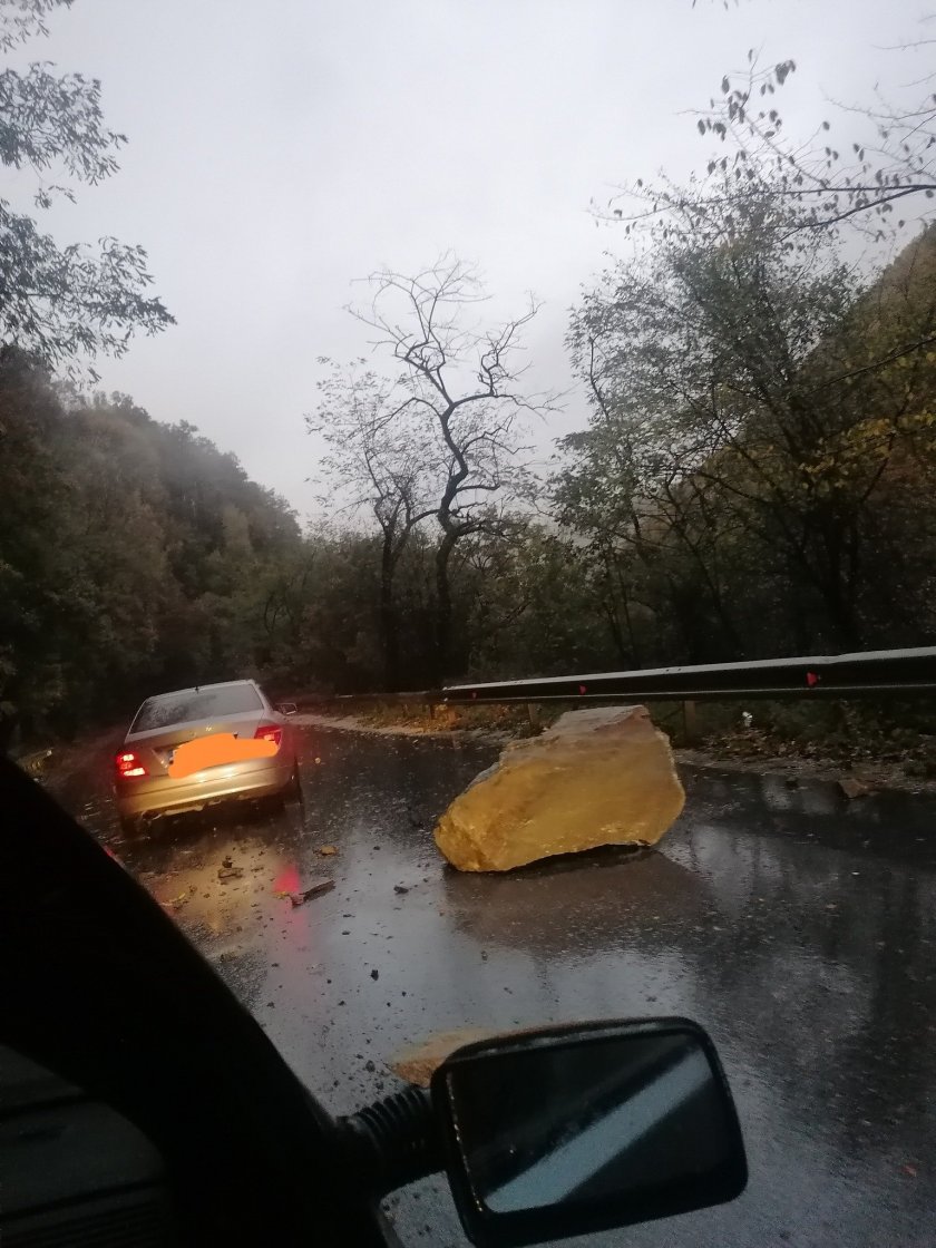 Проливните дъждове откъртиха голямо парче скала на пътя Самоков-София, става ясно от кадри в социалните мрежи.