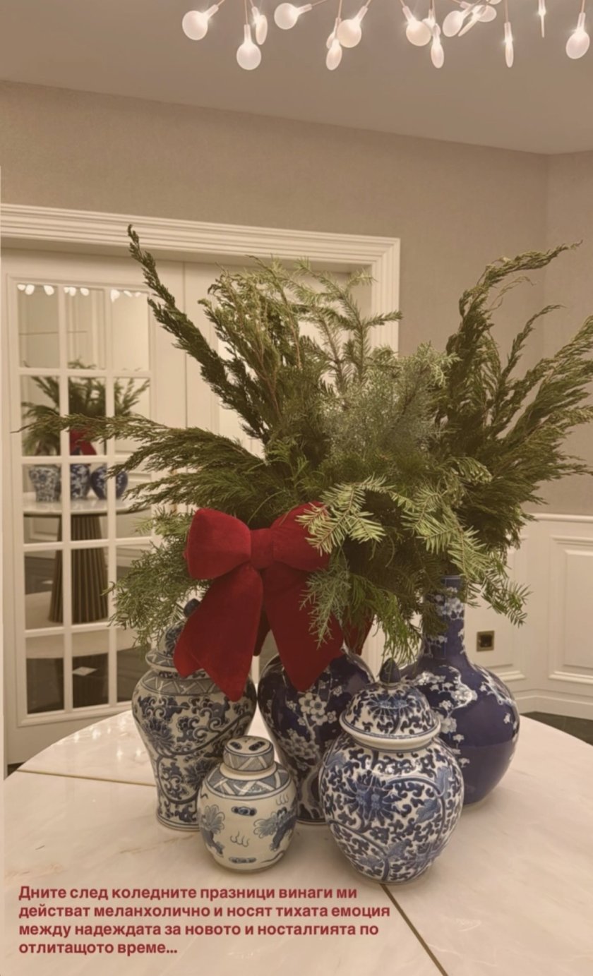 Зейнеб Маджурова публикува разкошна снимка на коридора в дома си, на която се похвали с впечатляващи антикварни вази. Със своето класическо синьо-бяло оформление и детайлни китайски мотиви вазите, които тя притежава, са не просто декоративни предмети, а истински произведения на изкуството.