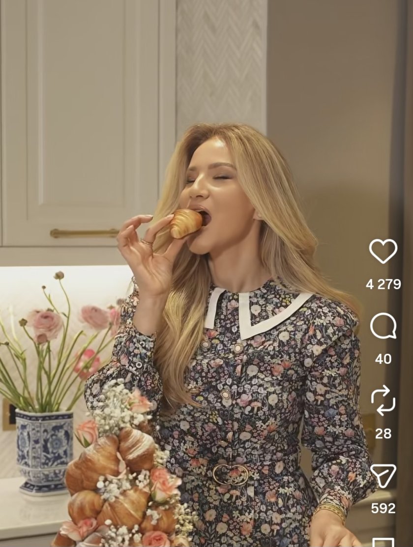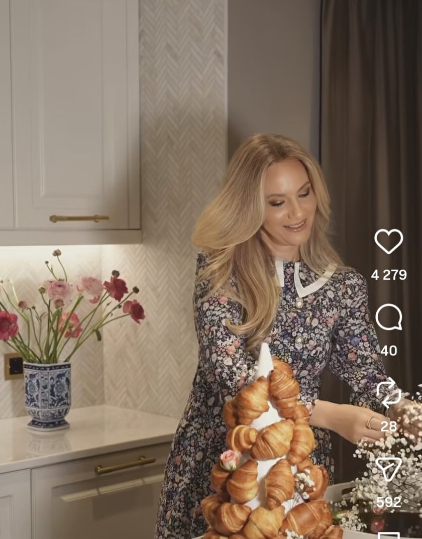 Бившата телевизионна водеща Зейнеб Маджурова очевидно скучае в палата си и се чуди с какво да заинтригува последователите си в социалните мрежи. Тя започна все по-често да споделя кадри от дома си, който години наред упорито криеше, а за Великден пусна клип с идеи за декорация, пише в. „Уикенд“. Във видеото се вижда как върху конус основа набожда мини кроасани с масло, а до тях добавя рози и гипсофила.