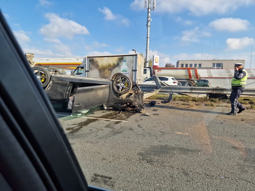Жестока катастрофа на Околовръстното шосе в района на Царско село в посока кв. Младост. За това съобщиха очевидци във фейсбук групата "Катастрофи в София".