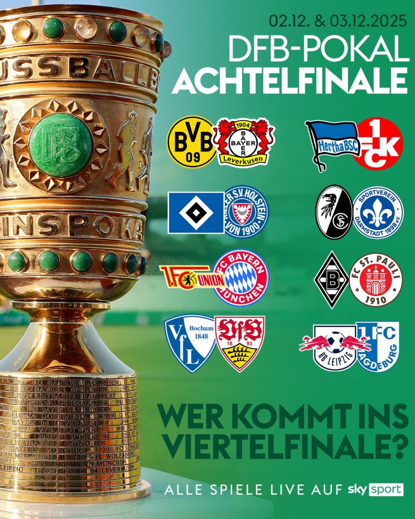Носителят на трофея Щутгарт гостуват на Бохум, РБ Лайпциг се изправя срещу Магдебург, Хамбургер ШФ играе срещу северногерманските си съперници Холщайн (Кил), а Фрайбург ще посрещне Дармщат в четири двубоя между клубове от Бундеслигата и отбори от Втора дивизия. Херта (Берлин) и Кайзерслаутерн са последните два съперника.