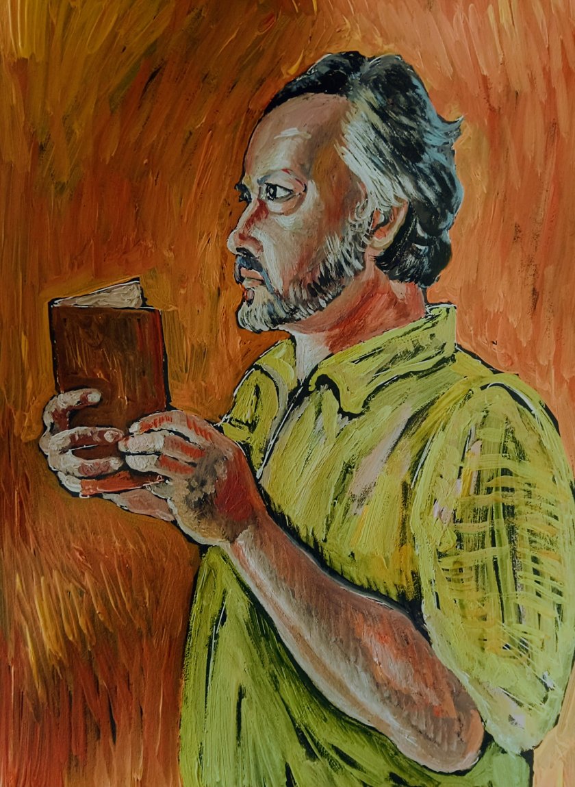 Автопортрет на Калин Терзийски. В последните години писателят се издържаше с шаржовете си