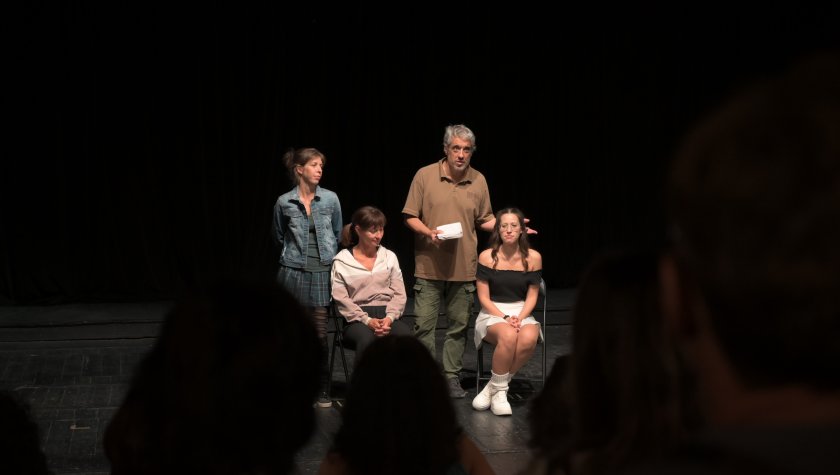 Снимките са направени от Владислав Андонов по време на представянето на резултатите от ателието по форум театър през септември 2025 г.